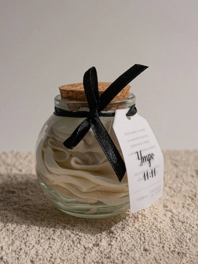 Поймайте волшебство момента с взбитым маслом ши Утро 11:11! Легкое, как утренний туман, это масло обволакивает кожу, словно ласковое прикосновение. Представьте: вы открываете баночку, и вас окутывает аромат ягодного десерта. Малина, ананас и черная смородина переплетаются со взбитыми сливками и медом, создавая аппетитный букет. Это идеальный способ начать день с улыбки и подарить коже нежность и заботу!