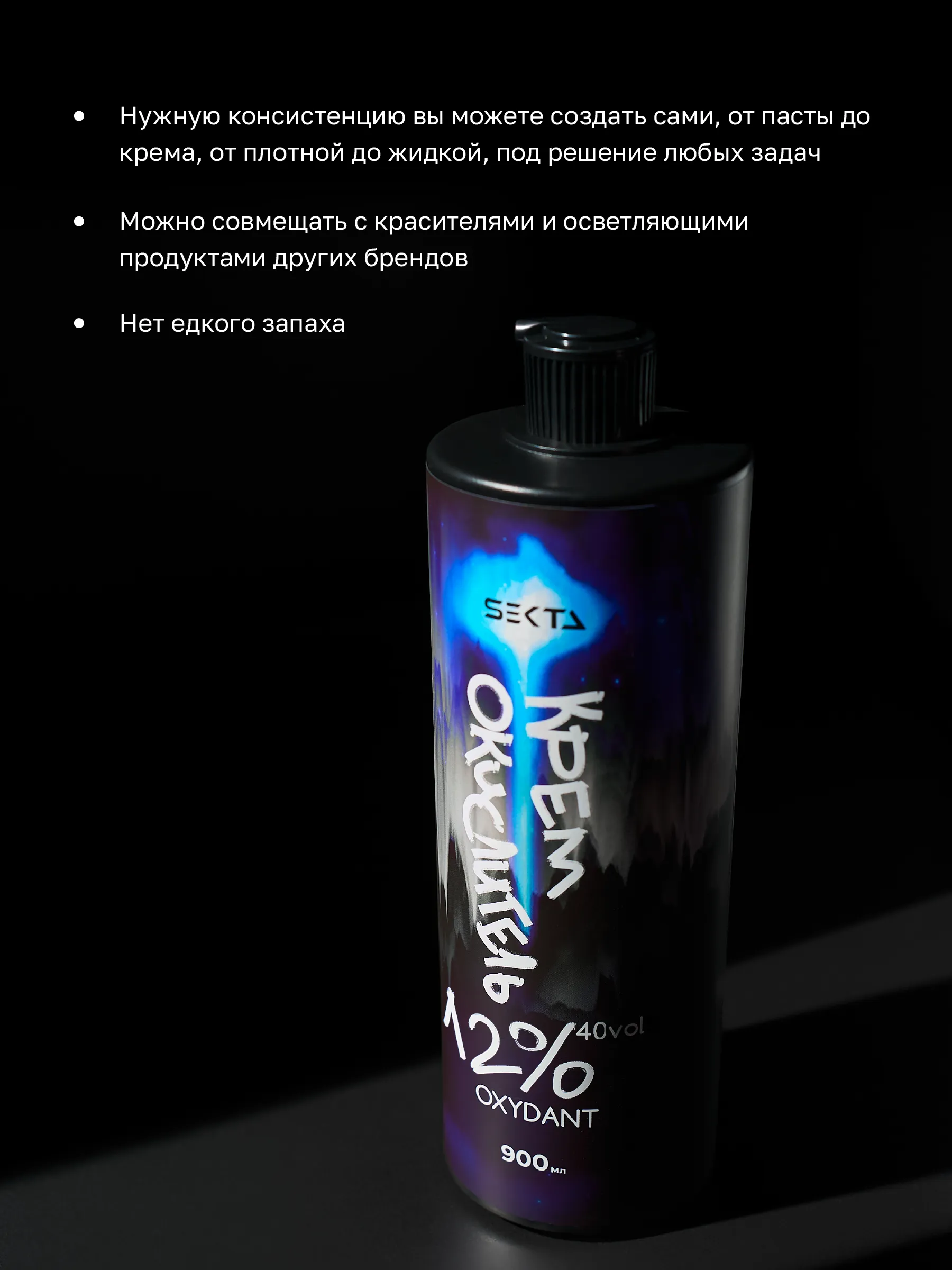 С помощью крем-окислителя вы можете создавать необходимую агрессию и консистенцию во взаимодействии с осветляющим/обесцвечивающим продуктом от Hair Sekta.