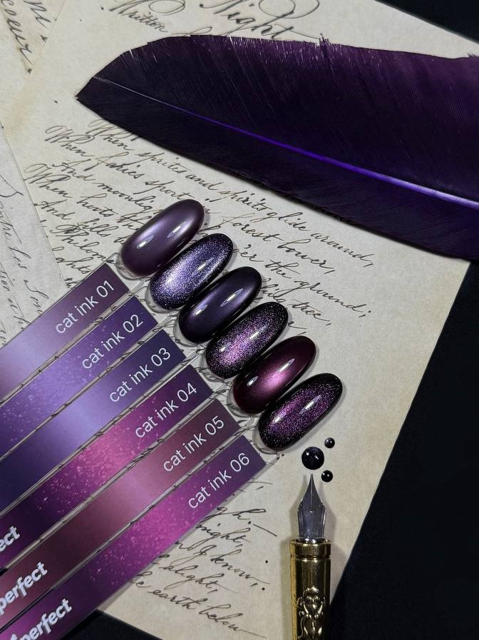 Ink Cat 01, 03, 05 с мелким шиммером, утонченное сияние.