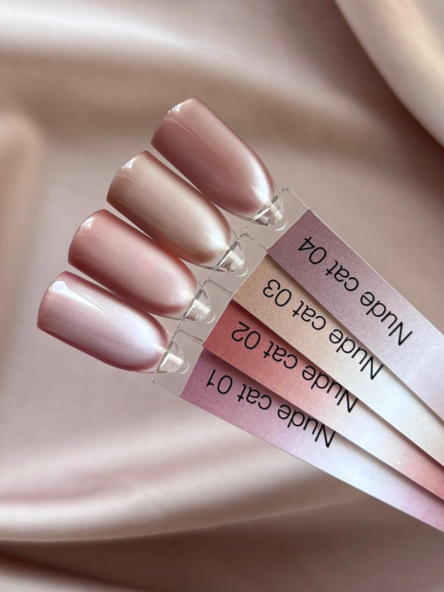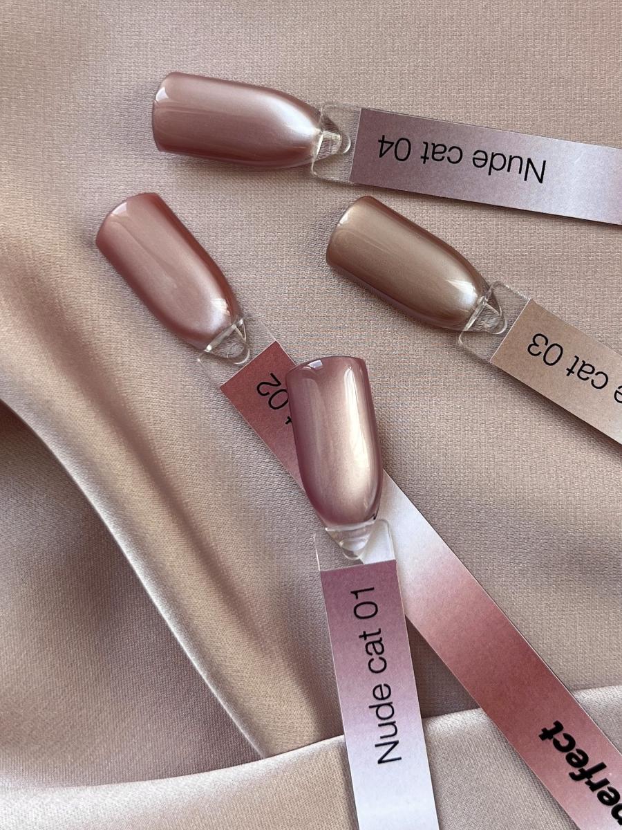 Коллекция Nude Cat от iPerfect — гель-лаки с ультра-мелкими магнитными частичками. За счет своего размера они дают тот самый шелковый эффект, который так ценят мастера.