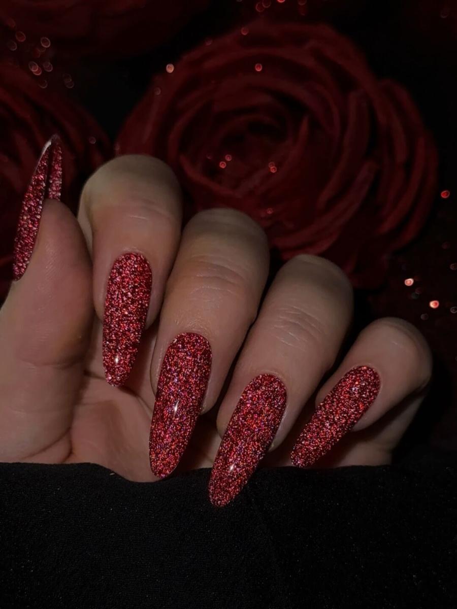классический красный и тренд на сияние.
