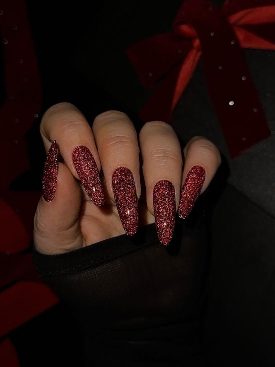 классический красный и тренд на сияние.
