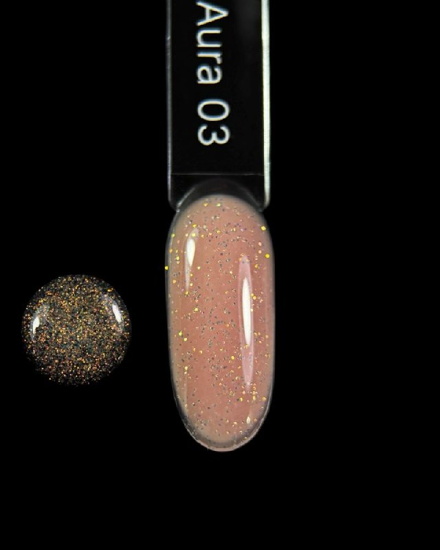 Aura 03 — прозрачный финиш с голографическим сиянием. Подходит для ярких и пастельных оттенков, делает цвет живее и сложнее.