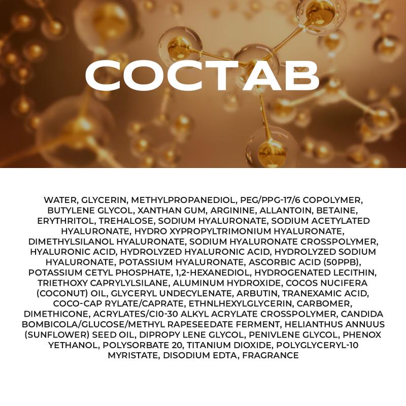 Состав: Water, Glycerin, Methylpropanediol, Peg/Ppg-17/6 Copolymer, Butylene Glycol, Xanthan Gum, Arginine, Allantoin, Betaine, Erythritol, Trehalose, Sodium Hyaluronate, Sodium Acetylated Hyaluronate, Hydro Xypropyltrimonium Hyaluronate, Dimethylsilanol Hyaluronate, Sodium Hyaluronate Crosspolymer, Hyaluronic Acid, Hydrolyzed Hyaluronic Acid, Hydrolyzed Sodium Hyaluronate, Potassium Hyaluronate, Ascorbic Acid (50ppb), Potassium Cetyl Phosphate, 1,2-Hexanediol, Hydrogenated Lecithin, Triethoxy Caprylylsilane, Aluminum Hydroxide, Cocos Nucifera (Coconut) Oil, Glyceryl Undecylenate, Arbutin, Tranexamic Acid, Coco-Cap Rylate/Caprate, Ethnlhexylglycerin, Carbomer, Dimethicone, Acrylates/Ci0-30 Alkyl Acrylate Crosspolymer, Candida Bombicola/Glucose/Methyl Rapeseedate Ferment, Helianthus Annuus (Sunflower) Seed Oil, Dipropy Lene Glycol, Penivlene Glycol, Phenox Yethanol, Polysorbate 20, Titanium Dioxide, Polyglyceryl-10 Myristate, Disodium Edta, Fragrance
