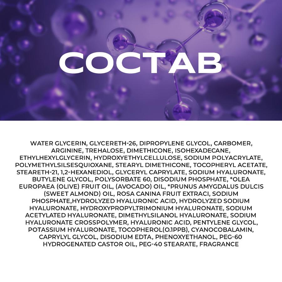 12 видов гиалуроновой кислоты проникает в глубокие слои эпидермиса, активно увлажняет клетки, способствует удержанию влаги в коже. Образует защитный слой, который не дает влаге испариться.