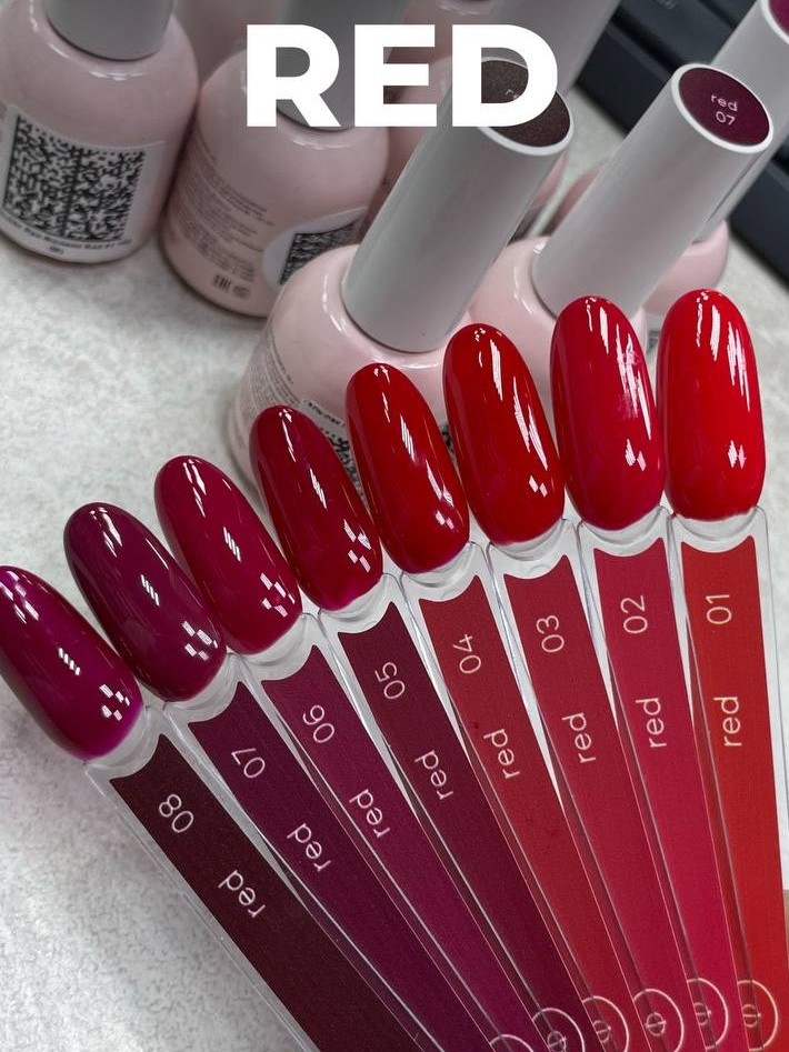 Насыщенная коллекция красных оттенков — от благородных бордовых и вишневых до самых ярких алых оттенков. Новая формула даёт глубину цвета в 1–2 тонких слоя и плотное, ровное покрытие без полос. Идеальна для выразительного френча, вечерних образов и сезонных акцентов.