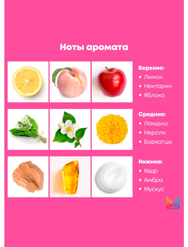 Аромат лака раскрывается нотами лимона, нектарина, красного яблока и ландыша.